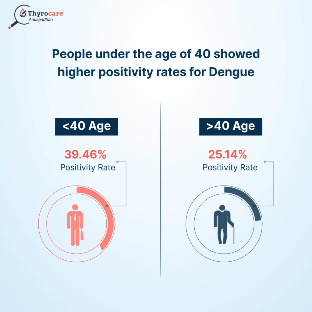 Within the tested population, people under the age of 40 years in 2024 showed a higher positivity rate of 39.46% in comparison to 25.14% in people over the age of 40 years which was similar to last year’s trend.