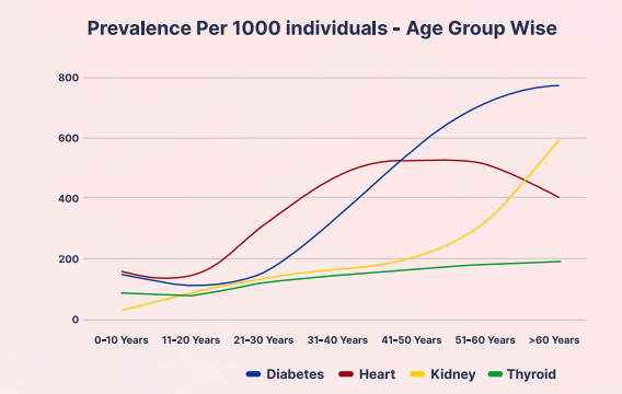 Analysis of 93 lakh+ preventive health checkups shows early signs of multiple health conditions, with risks beginning as early as the 20s.